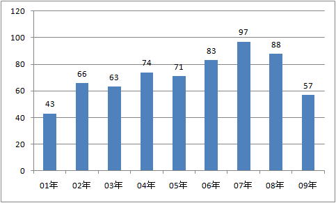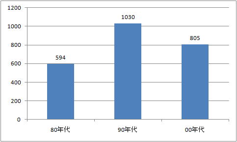 図ー2 00年代年次別 ショッピングセンター新規開設数 推移