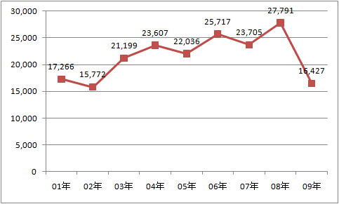 数値は総務省統計局 繊研新聞 2010年1月1日掲載数値