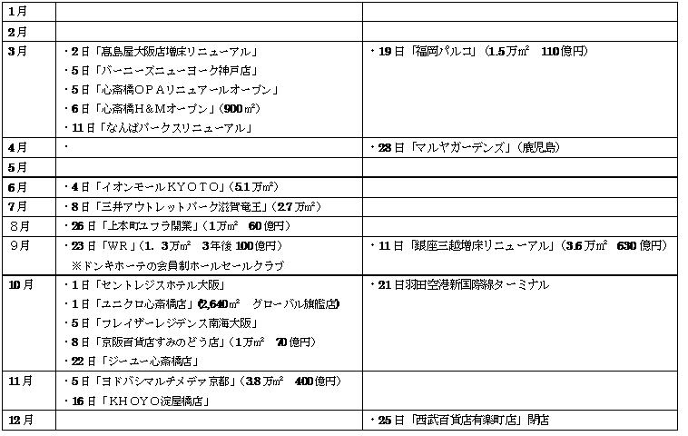 東京では3月に「二子玉川ライズショッピングセンター」、大町の「阪急大井町ガーデンズ」、九州博多の「JR博多シティ」と注目されるプロジェクトの開業が続きます。郊外でのSC開発にブレーキがかかってきたようです。