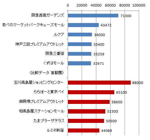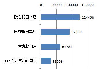 この4月に開業する駅の北地区「うめきた先行開発地域グランフロント大阪ショップ&レストラン」は店舗面積4.4万平米で266店舗が集積します。売上げ目標は発表されていませんが年間500億円はくだらないとされています。動線から考えて一番影響を受けるのはJR大阪の駅ビルです。