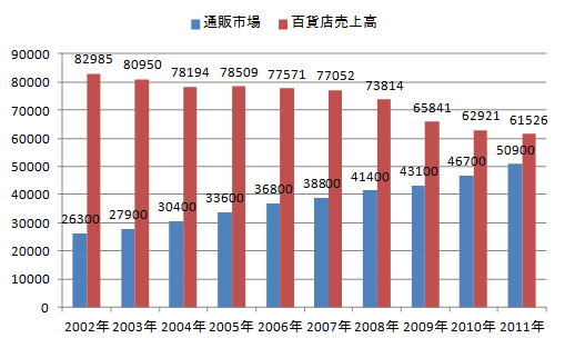 富士経済の調査では国内通販市場は前年比8%増の7兆5,269億円だそうです。物販は6兆2,734億円と7.6%増。サービス・デジタルコンテンツは1兆2,535億円の9.9%増です。電子ブックが普及すればもっと伸びていく分野でしょう。