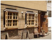 ビルに看板がでています。1Fはキッシュが美味しいカフェと、美容室です。